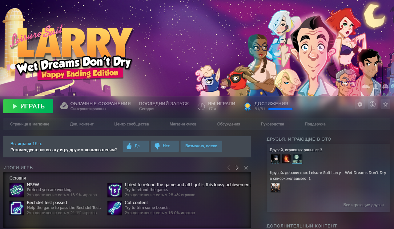 Cимулятор ходьбы с интересными и в меру сложными загадками. Над некоторыми иногда приходилось немного подумать. Вообще игра вдохновлена произведениями Лавкрафта и имеет немало отсылок к нему. Если интересна данная тематика и хочется пораскинуть мозгами, то игра должна зайти. https://i.postimg.cc/QChZQbXH/2023-05-17-21-28-45.png Еще прошел пару приключений про Ларри Лаффера. Олды помнят. Квесты старой школы с кучей гэгов, стеба современных трендов и пошлого юмора. Глоток свежего воздуха в реалиях нынешней индустрии. https://i.postimg.cc/xdvmxfvq/2023-06-13-22-20-13.png https://i.postimg.cc/zDtgPPgw/LL.png |