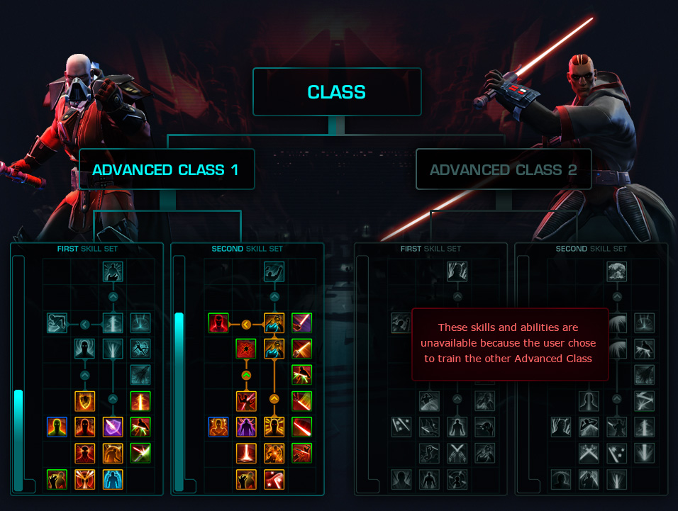 Скрытый текст: Привилегированные Классы – это специализированные профессии, которые ваши персонажи могут выбрать в Star Wars™: The Old Republic™. По мере того, как ваш персонаж становится более опытным в ходе своих приключений, у вас появится возможность выбрать один из двух Привилегированных Классов. Это решение также важно, как и выбор класса при создании персонажа. Это связано с тем, что ваш выбор сделает персонажа не только более сильным и индивидуальным, но и поможет вам в дальнейшем определить его роль в The Old Republic. В дополнение к вашим классовым способностям и навыкам ваш Привилегированный Класс даст вам доступ к способностям, определяющим вашу роль в группе, а также к специализированным умениям и даже новым типам оружия и брони. Кроме того, у каждого Привилегированного Класса будет доступно три набора способностей для дальнейшей кастомизации вашего персонажа. Скрытый текст: Приведенная таблица не является отражением конкретных наборов способностей Привилегированных Классов и не демонстрирует реальное число способностей, к которым вы сможете получить доступ. Таблица представлена с тем, чтобы привести пример того, как будет выглядеть персонаж, в данном случае Воин Сит, в процессе прокачки одного из Привилегированных Классов (заметьте, что набор способностей у второго Привилегированного Класса заблокирован, и эти способности не могут быть выучены). Как уже отмечено выше, каждый Привилегированный Класс открывает три набора способностей с разнообразными умениями в каждом из них. В отличие от выбора Привилегированного Класса, выбор данных способностей менее ограничен, и ваш персонаж может получить способности из любого набора или из всех наборов сразу! Shared Skill Set: Скрытый текст: В то время как первые два набора способностей включают способности, уникальные для выбранного Привилегированного Класса, то третий набор способностей состоит из общего набора способностей, распространяющихся на класс в целом. Важно отметить, что прокачивая способности Привилегированного Класса, вы используете те же очки, что и для прокачки общих способностей, поэтому вдумчиво расходуйте заработанные очки! Главная цель системы Привилегированных Классов заключается в том, чтобы позволить вам развивать своих персонажей в соответствии с выбранным вами стилем игры. Например, некоторые Воины Ситы захотят ворваться в центр сражения и принять на себя основной удар врага. Другие захотят действовать аккуратнее, продумывая свою стратегию, и направляю всю свою ярость на уничтожение врагов настолько быстро, насколько это возможно. Система Привилегированных Классов даст вам эти возможности и многие другие. Добавлено через 5 минут компаньоны: Скрытый текст: Скрытый текст: Каждому герою SW необходим компаньон. У Хана был Чюи, у Люка — R2-D2, даже у Джаббы — обезьяна-ящер Кроха. Эти персонажи дополняют силу игрока и поддерживают его в пути, который он выбирает. Компаньоны — воинственные, дружелюбные, разговорчивые, всегда составят компанию в вашем приключении. Скрытый текст: В SW:TOR разнообразие персонажей компаньонов служит разным целям. Одни присоединятся к вам ради приключения, другие ради наживы, а мотивация других может быть неясна до поры до времени, и раскроется лишь со временем. Компаньоны разнообразны — интеллектуальные дроиды, причудливые пришельцы, п