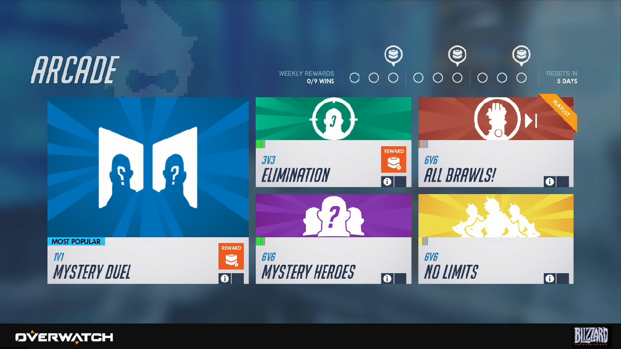 Скрытый текст: ● За участие в режимах Аркады игроки смогут получать опыт и награды. ● Контейнер за первую победу в Аркаде. ● 9 побед в неделю — 3 Контейнера. 1 Контейнер дается за каждые 3 победы. Победы можно делать в в любом режиме Аркады. ● Режим Аркады «Mystery Duel» (Загадочная дуэль): в нем вы можете разобраться с врагом один на один. 9 раундов, побеждает тот, кто сделал 5 побед. Вам дается 1 случайный герой. Специально для небольших стычек была создана новая карта «Экологическая станция: Антарктика». Именно там работала Мэй, и там же она погрузилась в свой криостазис. ● На этой же карте будет работать новый режим 3х3 «Elimination». В нем можно участвовать как соло, так и командой. Вы не можете сменить героев. Когда героя убивают, он не может возродиться. ● Еще один новый режим 6х6 «Загадочные герои». Играется на обычных картах Overwatch. Система автоматически подбирает вам героя. ● В Быструю игру вводят ограничение на повторяющихся героев. Будет доступно на PTR уже в понедельник. ● Новый режим «No limits» (Без границ). Там будет разрешен повтор героев. ● Режим Аркады «All Brawls» («Все Потасовки»). В нем будет список всех доступных старых Потасовок. Вы сами выбираете в то, что хотите поиграть. В конце каждого раунда система будет менять правила (одна Потасовка будет сменяться другой). В этот список также добавлено несколько новых Потасовок. Например, «Charge» (Рывок), где можно играть только за Лусио и Райнхардта. Еще одна Потасовка — только Лусио и Турбосвин, действие происходит у колодца на Илиосе. ● Возможно, игрокам, которые хотят поиграть в менее популярные Потасовки придется довольно долго ждать очереди. |