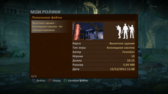 2. Из главного меню зайдите в раздел Сообщество Мои ролики. Здесь хранятся все ваши последние сыгранные матчи (у них стоит пометка «Не отредактировано»), самые лучшие из них вы можете скопировать в сетевое хранилище, чтобы они никогда не потерялись.