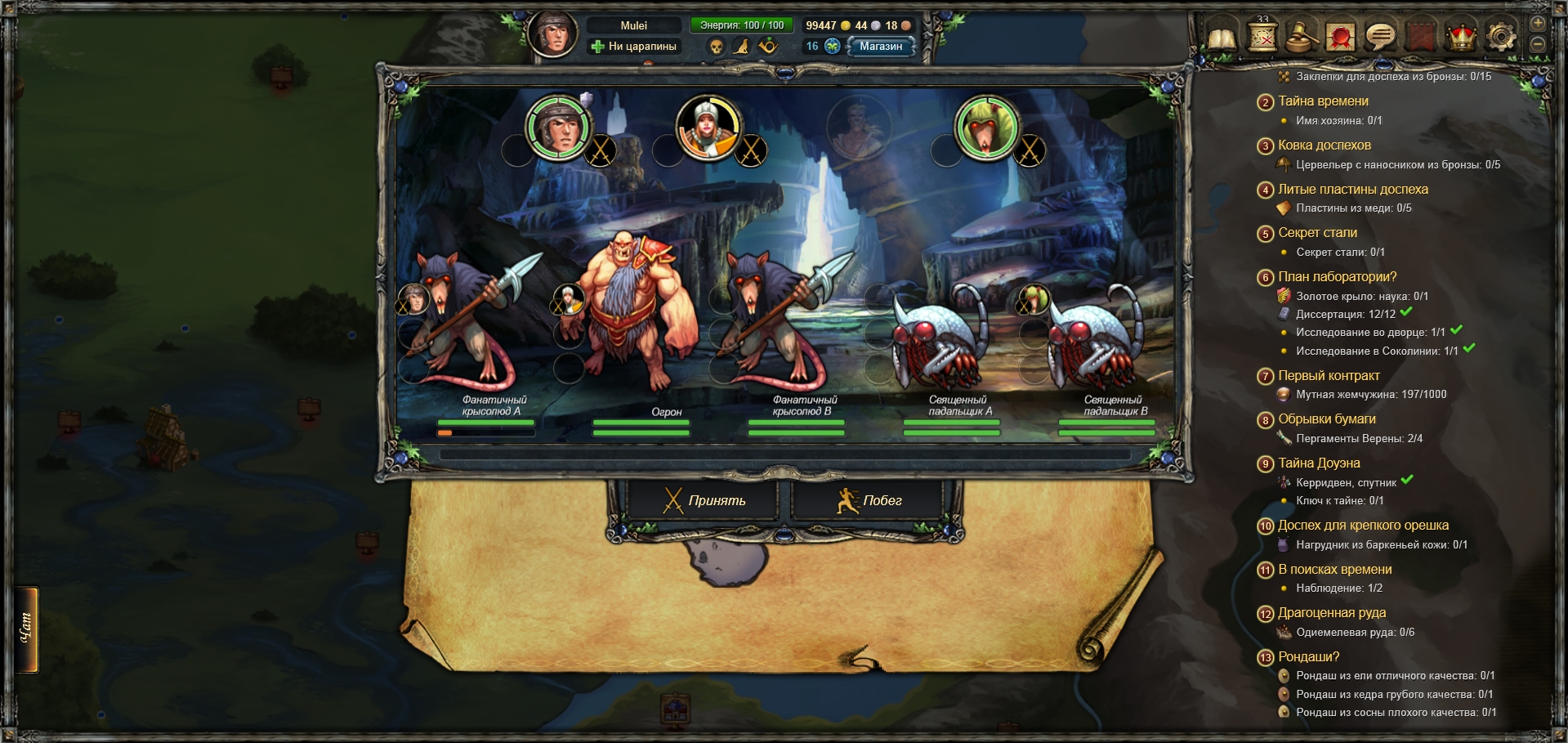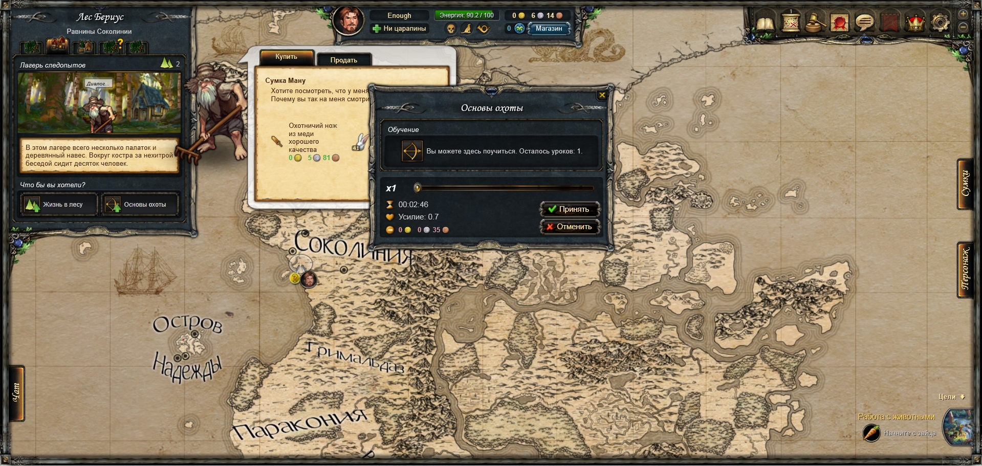 Пример: Что-бы сделать клепанный кожаный доспех, нужна кожа (которая делается из шкур, а шкуры добывает охотник), нужны заклепки и лезвия которые делает кузнец. А это всё другие игроки и им нужно что-то предложить в замен, что бы они тебе отдали то, что нужно тебе. В игре есть данжы, петы, бои и прочее. Так же есть асинхронный геймплей, т.е. ты даешь персонажу задание (или цепочку заданий), закрываешь вкладку и делаешь другие свои дела, потом возвращаешься в игру и смотришь результат. Т.е. игра не требует постоянного присутствия у компа. Персонаж может прокачиваться даже ночью, если ему дать заданий. |
