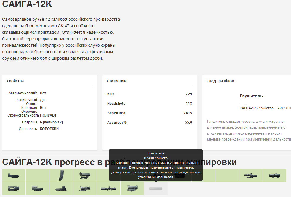 Скрытый текст: Как видите, там уже 729 убийств, а для открытия нужно всего 400. Полоска глушителя вообще не заполняется. Это касается и некоторых других оружий. Что делать, так ли у всех?