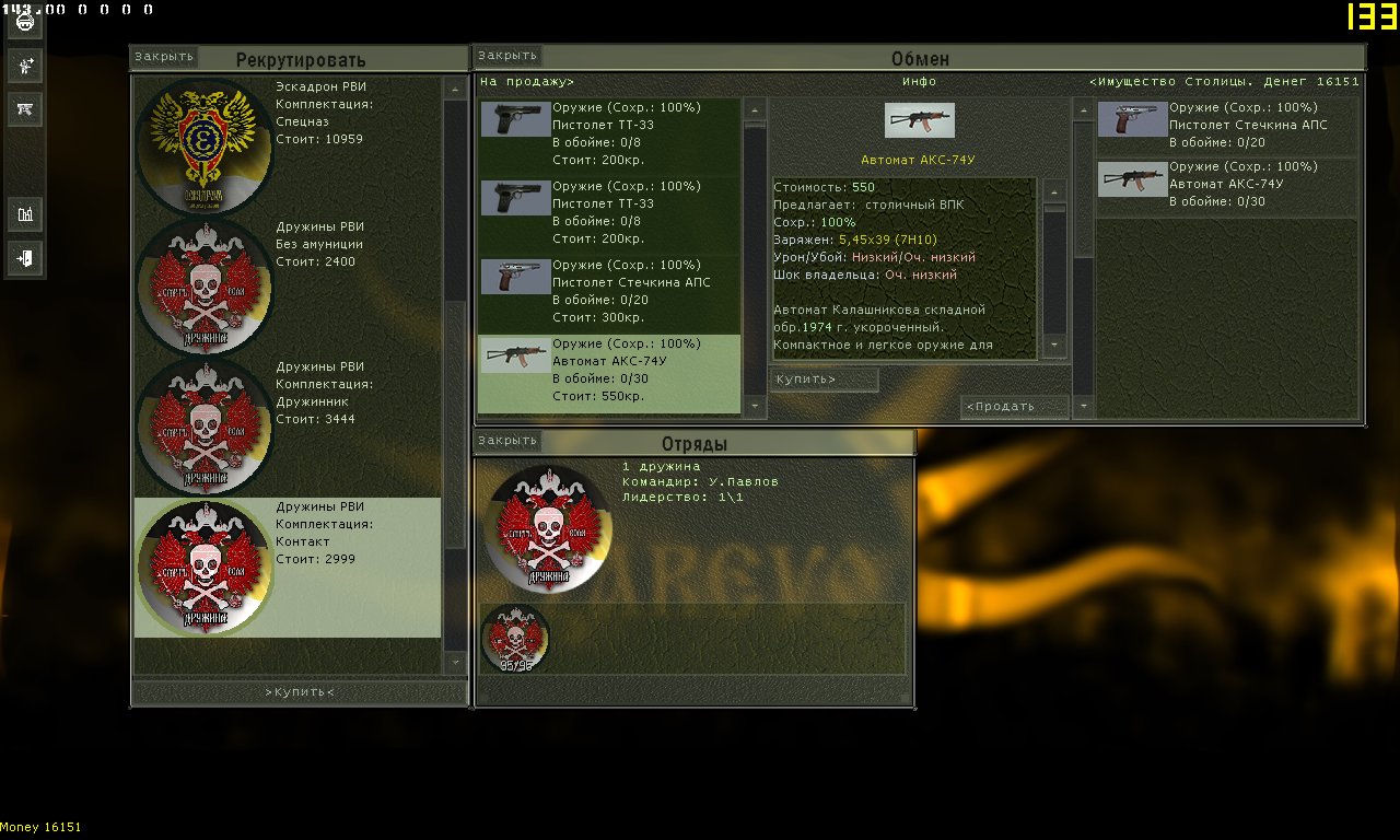 ![]() Тактическая пошаговая стратегия с элементами РПГ Команда: iLya2IK - руководитель проекта, программист NiKo (Механик) - 3d моделирование, игровая механика FreeSp1r1t- 3d моделирование Anshivl - 3d моделирование DezRupor - 2d графика haspar- 2d графика Maxim Gubish - 2d графика Viruz - игровая механика, моральная поддержка Инструментарий: Newton Game Dynamics is a trademark of Newton Game Dynamics OpenAL is a trademark of Creative Labs, Inc OpenGL is a trademark of Silicon Graphics, Inc Delphi is a trademark of Embarcadero Technologies, Inc GLScene - OpenGL Solution for Delphi [http://glscene.org] dgSoundEngine - DunconGames [Duncon, simsmen] Indy (Internet Direct) 10.6.0.502 - [http://www.indyproject.org/] Delphi Web Script II 2.0 - [http://www.dwscript.com] L0Dka3D - 3d model editor [www.lodka3d.narod.ru] Fast Memory Manager 4.78 - [http://fastmm.sourceforge.net] О проекте Пошаговая тактическая стратегия в сеттинге современной войны. Противоборствующие фракции - Российская Федерация, Китай, Великобритания, Неомонархисты, (Республика Джучистан, Исламисты и Наемники (пока не реализовано)). Место действия - выдуманная постсоветская среднеазиатская республика Джучистан. С юга Джучистана происходит вторжение исламистских боевиков, что дестабилизирует обстановку в стране и провоцирует гражданскую войну. Джучистан является союзником РФ и Китая по ОДКБ. Для стабилизации положения союзной страны в Джучистан вводится совместный российско-китайский контингент. Мировое сообщество обвиняет ОДКБ в подавлении свободного волеизъявления джучистанцев, и Великобритания, заполучив мандат НАТО, быстро перебрасывает из соседнего Афганистана бригаду королевских морских пехотинцев, чтобы обеспечить поддержкой исламистский южный Джучистан. Зреет серьезный конфликт. Демка и Просьба к тому, кто читает Большая просьба проверить демку на разных системах. Желательно погонять ее также в сетевых баталиях (пока только LAN). Очень нужны советы по созданию интернет-сервера для подобной игры. С чего начать, куда смотреть? Скачать Демку Прежде чем запустить демку - прочитайте Readme.rtf Приветствуются отзывы, советы, вопросы. Минимум требований к системе Операционная система: Microsoft® Windows™ (XP, Vista, 7 (32, 64 bit)) Драйвера видеокарты должны реализовывать функции OpenGL 3.0 и выше. Тестировал как на ATI Radeon, так и на nVIDIA, работает стабильно. Настоятельно рекомендуется скачать последние драйвера для видеокарты. Установка продукта Просто распакуйте архив в любую папку на диске, скажем в C:\Program Files\ Запуск игры производится открытием файла Launcher.exe (при первом запуске). В последующем возможен запуск через Accident.exe или ZAREVO.exe Скриншоты Скрытый текст: |