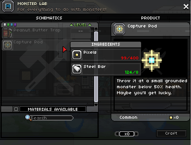 • Генератор монстров: Пока что части существ влияют только на их характеристики, но позднее от них также будут зависеть их поведение и способности. К примеру, существа с паучьими ногами смогут лазать по стенам, огненные монстры — обжигать. Так вы можете встретить огненных пауков, прыгающих на вас с потолка. Возможно, дистанционные атаки будут «привязаны» к определённым типам голов. Тип генерируемых существ может зависеть от биома.