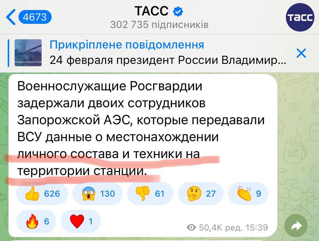}I{ E I{ A, стукачи сливали по личному составу ифу и по технике, где тут про вооружение свидомый? Или камаз перевозящий росгвардейцев это вооружение? Страшное наверное, наступательное да?) Да и какой смысл там что-то кроме пво иметь и охраны. Больные на голову укры поливают АЭС ракетами, ты там как вообще, лучевой болезнью уже готовишься переболеть, ничего не екнуло? Или Львов по твоему на другом конце земного шара находится? Ты глобус Уркаины на глобус мира смени и откроешь для себя много нового.
