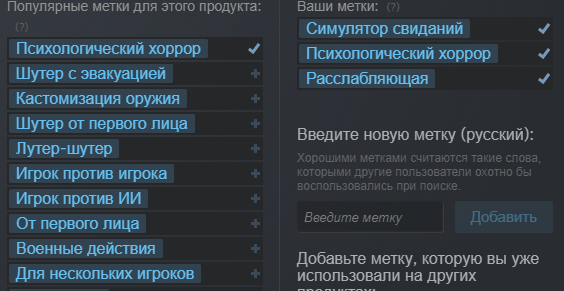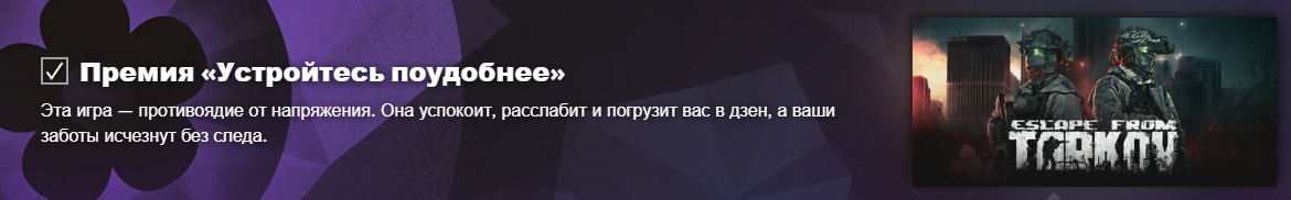 Там номинации все бестолковые и ни о чем не говорящие. Чисто повод народ расшевелить. Конечно. Игра расслабляет. Я в ту же минуту, как ее в стим добавили пошел и насрал метками, но только одна прижилась, к сожалению. Скрытый текст: |