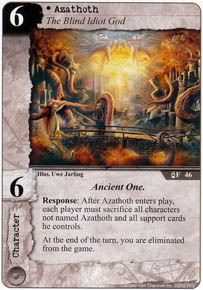 да ведь Азатот же в одной из игр по вселенной, в Елдер сайне, кажется, который так то дуэльный, даже есть карта с ним, при выходе которой в конце хода проигрывают ВСЕ ну очаровательно же