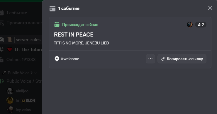 Скрытый текст: Хотя может завтра и вернут. Этого типа (владельца тфт) кстати забанили не так давно и весь чат угарал с этого, а в мире флешмоб был, типы с его ником или производными падали в войд)