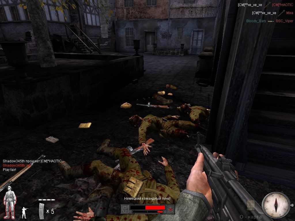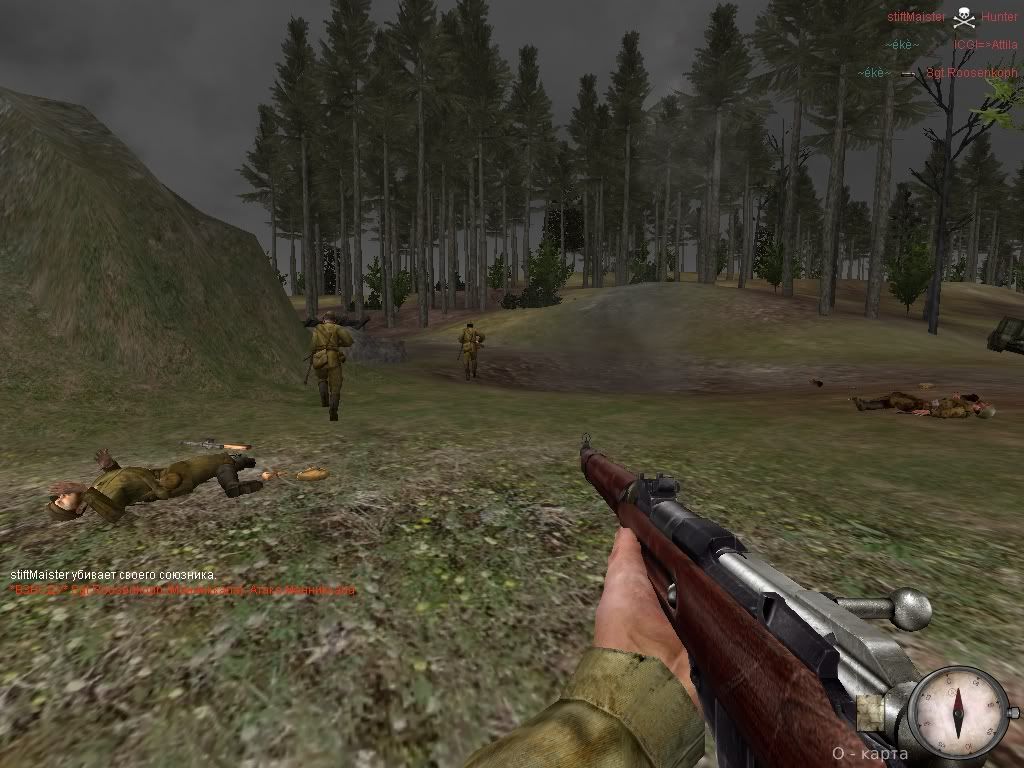 Кригшдат - мега карта! Уж на сколько я не люблю кастомные карты, но эта мне полюбилась. Делалась она человек на 40-50, изменили текстуры, трассеры пулеметов, цвет формы другой - похожий очень и в зданиях бывает бегают в одной куче и русские и немцы и не понимают кто рядом =) Забавно. Сам своих по началу стрелял - потом уже научился кое как определять.