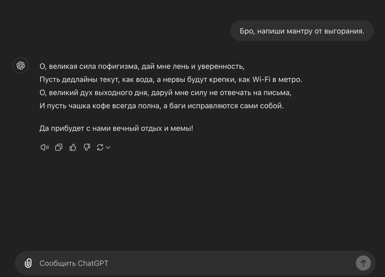 ___________ Кстати, читали уже этот лонг Альтмана по поводу ИИ и его перспектив, если читали или прочитаете, поделитесь мыслями. Ну и вот вам новая мантра, запомните)) Скрытый текст: Последний раз редактировалось McDragon; 15.11.2024 в 04:12. |