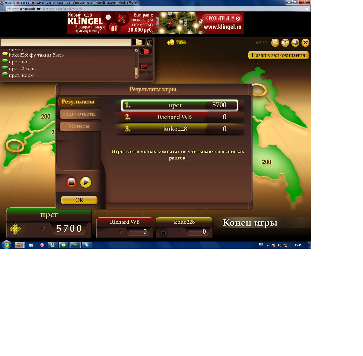 ну первый результат клинок вылетел, когда я уже на столицу напал и ето был не единственный вылет, поетому он кучу засрал вопросцев
