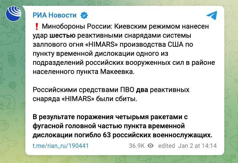Как видите, достаточно быстро после происшествия есть официальные данные, реакция, объяснения. Надеюсь, будут предъявлены головы командиров, виновных в произошедшем. А вы можете и дальше, развесив уши, слушать про то, что все ракеты сбиты подстанциями и вообще их осталось на 2-3 пуска.