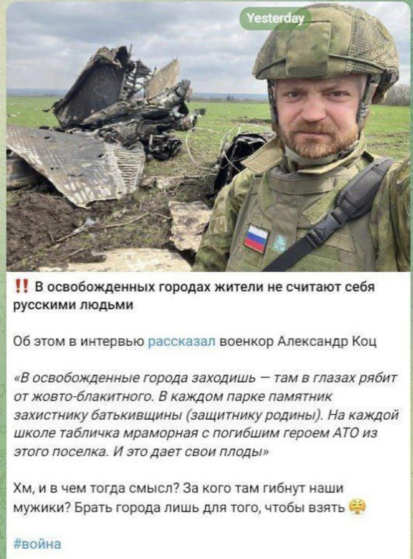 Освобождение - переформатирование мозгов… Все хорошее что осталось в людях это русское, все плохое укропское. Итог. Что бы не стать неонацистом, просто будь коллаборантом в любой ситуации по отношению к рф, не люби свою страну, а то не дай бог украинцем станешь.. |
