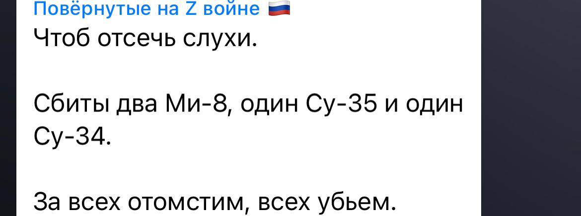 Почему сказки ? У тебя как всегда очень нервозная реакция на негативные новости, пытаешься как то компенсировать тем, что рф мучает мирняк как всегда… Шторм шадоу кстати отработали отлично по скоплению русни, найс. Сегодня прям продуктивный день : Скрытый текст: ГОЙДА, работайте братья https://t.me/ragnarockkyiv/50830 Пригожин разоткровенничался… по опасной дороге ходит, но долго ли ? Ну а говорящие головы как всегда наврут, что «сво идет по плану» Последний раз редактировалось }I{ E I{ A; 13.05.2023 в 19:16. |
