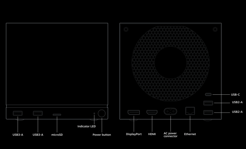 Порты: гигабитный Ethernet, DisplayPort 1.4, HDMI 2.0, один USB-C и четыре USB-A.