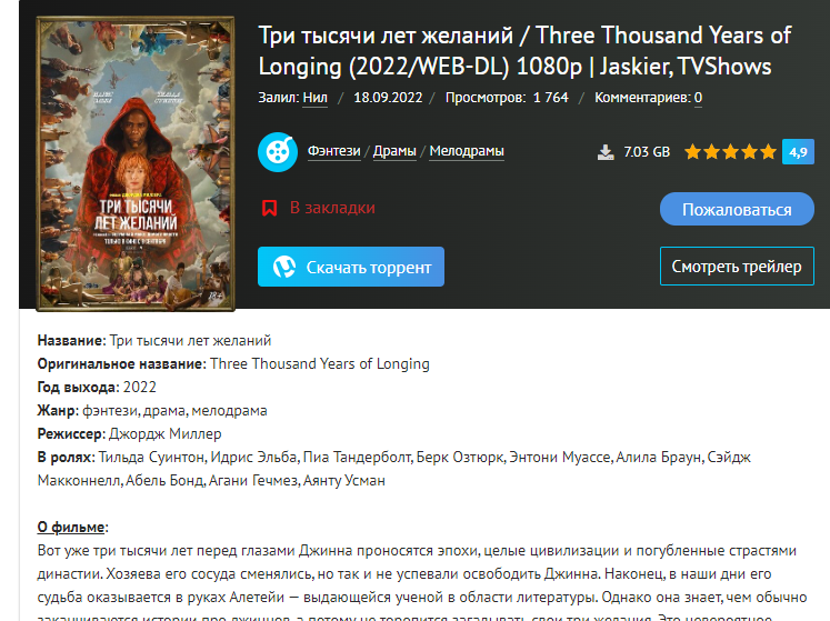 Три тысячи лет желаний | Three Thousand Years of Longing (2022)