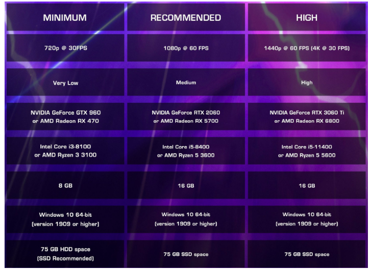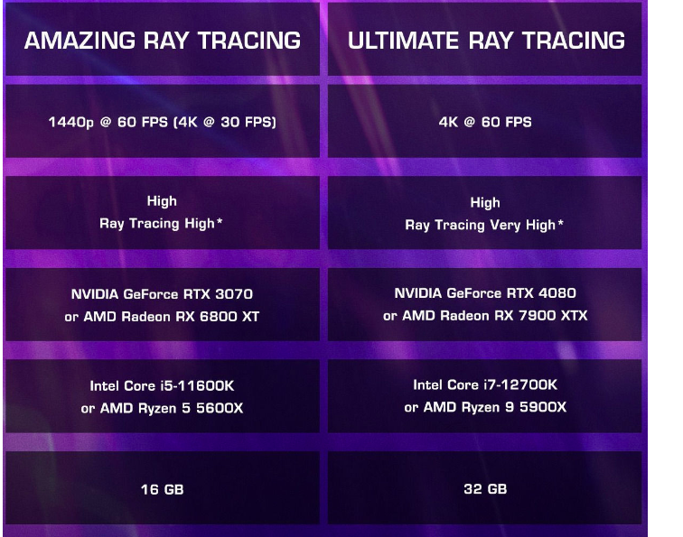 ![]() Вот для высоких 3060ти заявлена и процессоры 11 серии интела. Тут как бы извините, хотите чтобы выглядело и игралось аналогично как на пс5, то извольте иметь актуальное железо. А вот требования для игры с лучами в 2к и 4к.