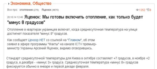 HeatherMason, Про погибших солдат я думаю и так ясно, а вот про -8 смешно. Думаю, он и правда перепутал. Ну, если дождаться -8, то включать будет уже поздно. Теплоноситель, который вода, уже порвет трубы к этому моменту. На следующей неделе ночью на Украинах до -5. Батареи все так же холодны или включают таки уже?