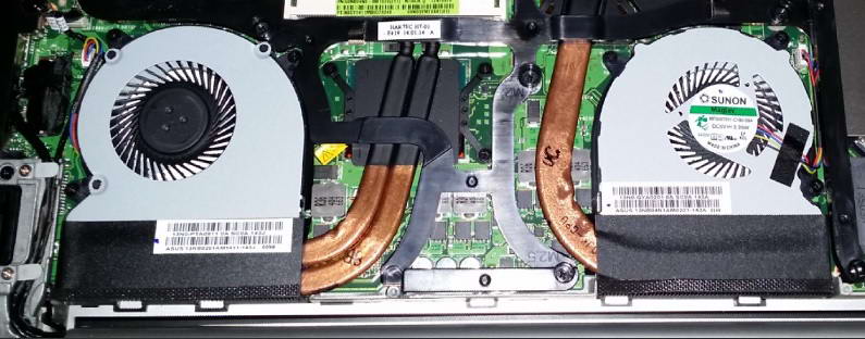 - Охлаждение. Отсутствие "мехового воротника" на радиаторе вовсе не гарантирует отсутствие проблем с охлаждением. Нагрузите процессор и видеокарту, после чего подождите хотя бы 15-20 минут, дав прогреться всей системе охлаждения. Если температуры будут критическими (все что выше +80°С считается уже нехорошим) и продолжают расти, то делаем выводы: либо вентилятор уже не способен вращаться на максимальной скорости из-за высокой степени износа, либо прохудилась сама термотрубка, хладагент из нее вышел и она теперь не более чем кусок металла. Кстати, если на высоких оборотах кулер трещит, это еще один повод сбросить цену на ноут (новый вентилятор вам легко встанет в пару тысяч рублей). Также высокие температуры могут говорить просто о неудачной конструкции самой системы охлаждения, т.е. проблема перегрева будет вас преследовать постоянно даже при идеальной чистой системе охлаждения и на максимальных оборотах вентилятора.