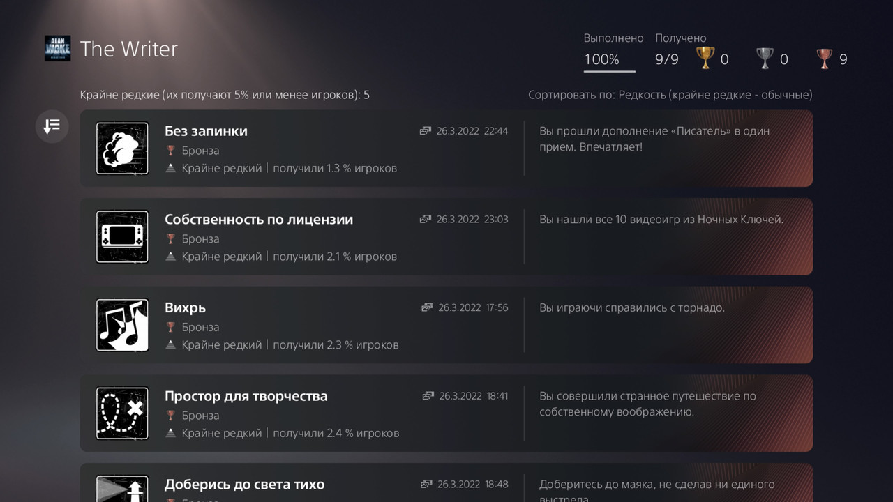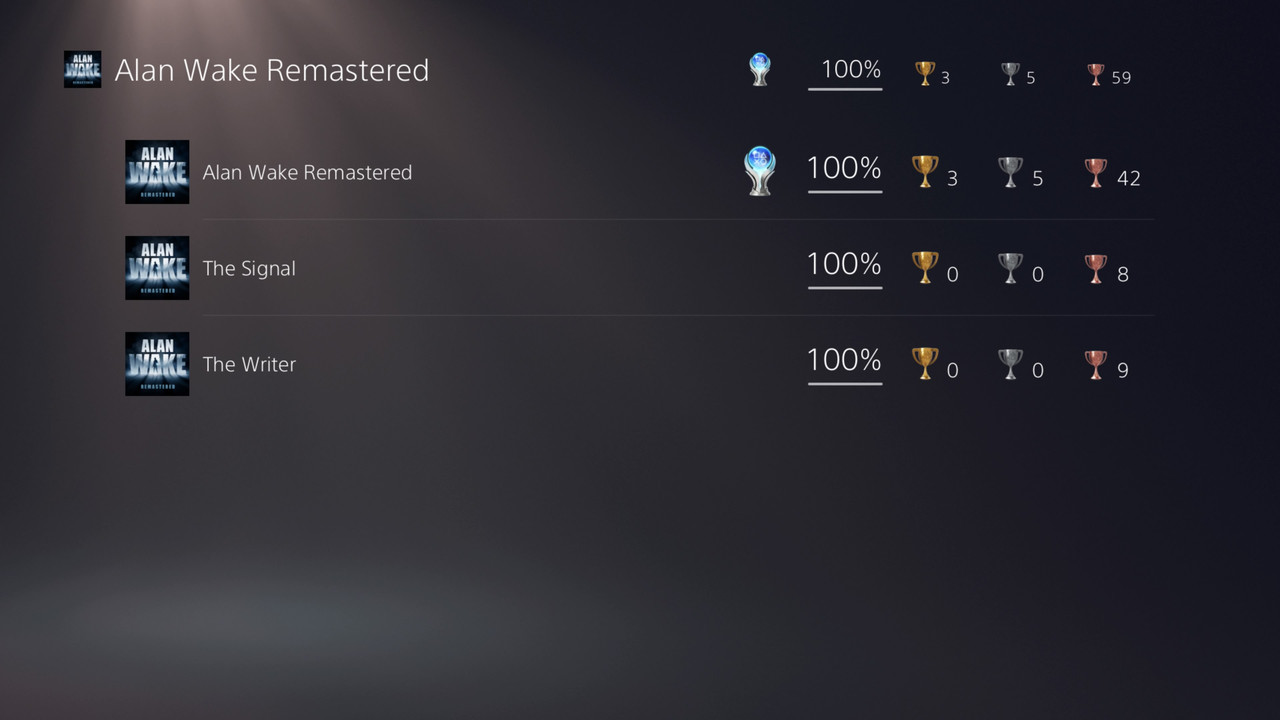 Взята платина в шедевральном Alan Wake и 2 дополнениях.