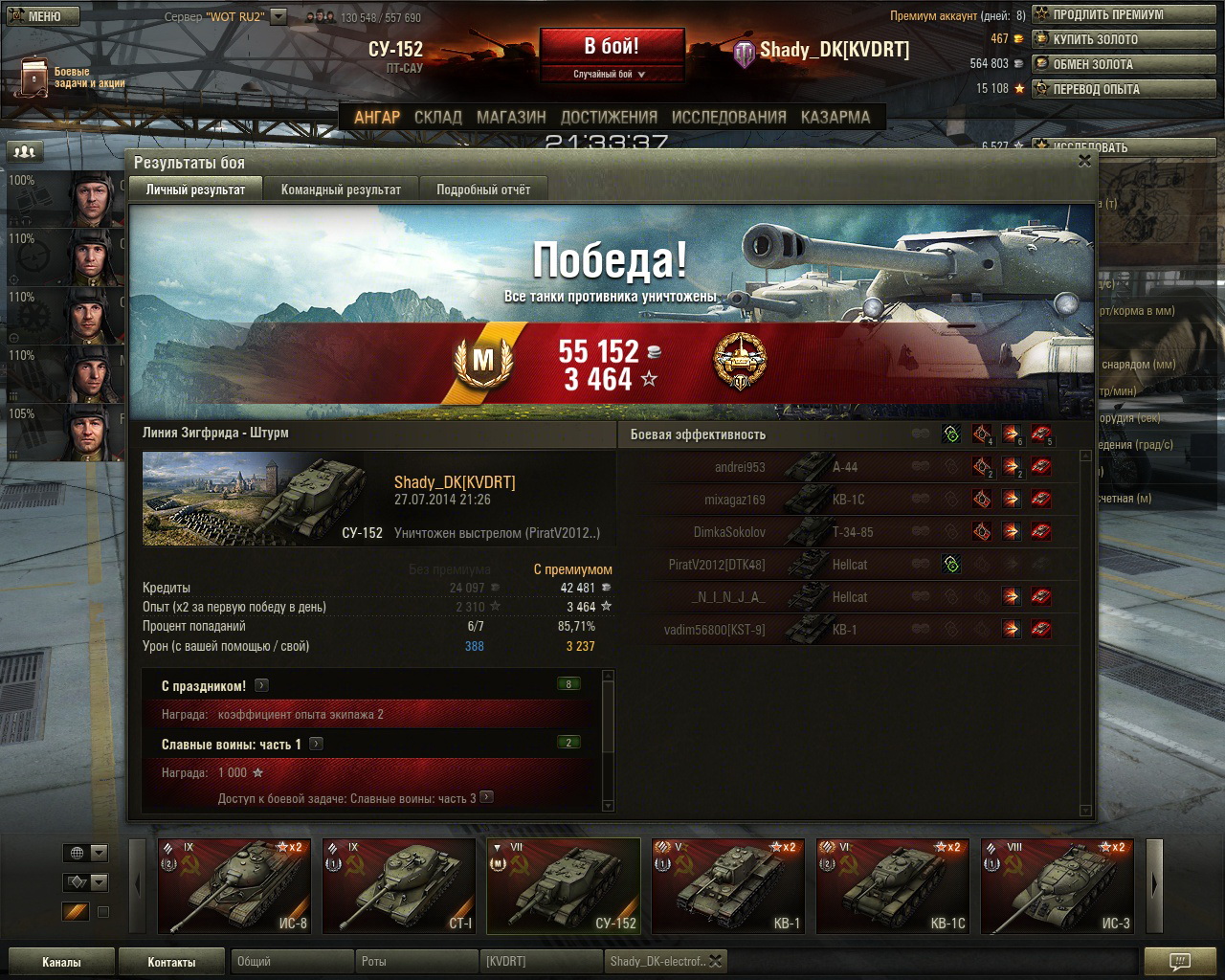 Скрытый текст: Заходя в тему будь готов Скрытый текст: Информация: World of Tanks («Мир танков») — это массовая многопользовательская онлайн-игра, полностью посвященная бронированным машинам середины XX века. Игроки получат возможность плечом к плечу сражаться с поклонниками стальных гигантов со всех уголков планеты, отстаивая свои претензии на мировое танковое господство. Продвинутая система прокачки и развития позволит вам испытать любую из машин, представленных в игре. Нравится ли вам изматывать противника на юрких легких танках, совершать неистовые прорывы на универсальных средних, испепелять врагов исполинскими тяжами, или же вы желаете стать первоклассным снайпером, управляя дальнобойной артиллерией — машина любого класса может стать поистине смертоносным орудием в руках настоящего профи. Но даже самые сильные игроки не смогут добиться успеха в одиночку. В «Мире танков» все решает коллектив, а победа достигается за счет слаженной работы команды, где каждому игроку отводится своя роль. Особенности: Скрытый текст: Медиа: FAQ для новых бойцов: Скрытый текст: Список игроков: Скрытый текст: Прочее: Скрытый текст: :Совершено секретно!: Скрытый текст: Корреляция игрового скилла и социального положения (на базе реальных высказываний с оф форума) Скрытый текст: NEW! Это интересно! Противостояние: узнай, кто близок к короне Европы Блог разработчиков: о стальном зоопарке, и не только. DEV-tracker: следи за тем, что говорят разработчики! Стволомерка Последний раз редактировалось DoctorWagner; 22.08.2022 в 22:03. |