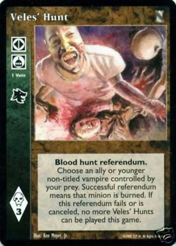 Кровавая охота - Если вампир нарушает Традиции и обрушивает гнев старейшин на свою голову, то за ним охотятся, а затем его уничтожают. От всех, кто услышит подобный зов, ожидается помощь и участие. Обычно подобное действие называют кровавой охотой. Только старейший в городе может призвать к кровавой охоте. В большинстве случаев «старейшим» считается князь.